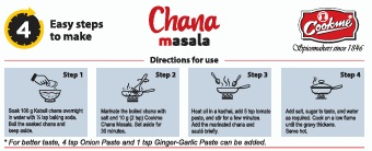 Kabuli Chana 100 g, Baking Soda ¼ tsp, Cookme Chana Mix 2 tsp, Tomato Paste 5 tsp, Salt and Sugar to taste.