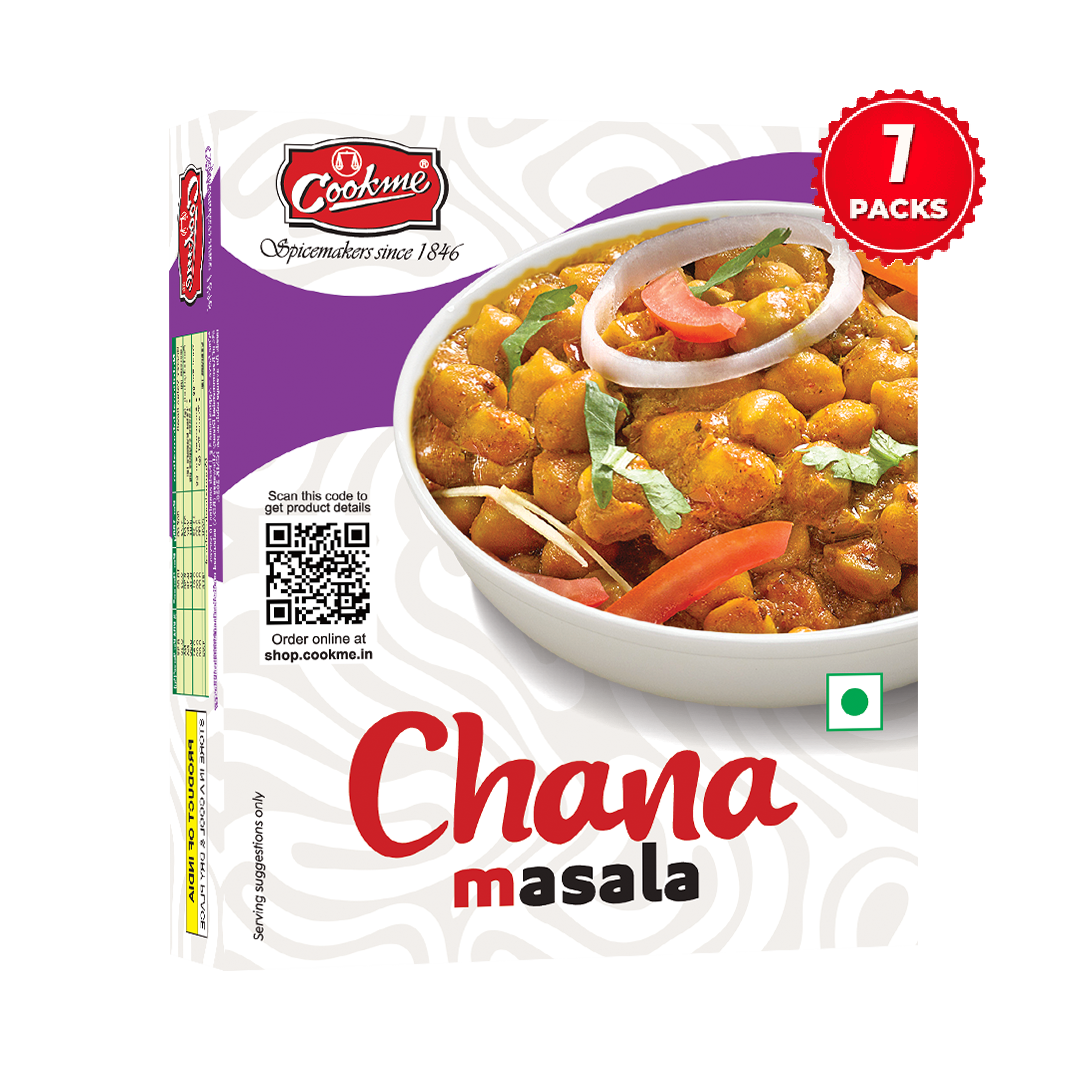 Soak Kabuli chana in water with pinch of baking soda (¼ tsp) and allow standing overnight. Boil soaked chana and keep aside. Now marinate the boiled chana with salt and ‘Cookme Chana Mix’ and keep it aside for 30 minutes. Heat oil in a kadhai and add tomato paste in it and stir for few minutes. Now add the marinated chana in it and stir for a while. Add salt and sugar to taste and water as per requirements. Cook on a low flame till gravy thickens. Serve hot.