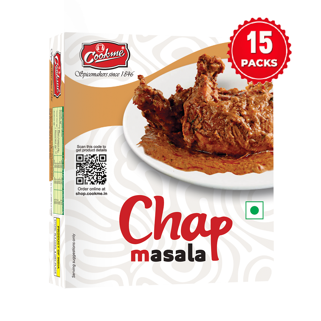 Take a bowl and add 5 tsp (25 g) ‘Cookme Chap Mix’ with half cup water to make a thick paste and keep aside for 5-6 minutes. Make a paste with onion and garlic and keep aside. Marinate the mutton/chicken with onion-garlic paste and the paste made with ‘Cookme Chap Mix’ and keep it aside for 5-6 hours. Heat ghee in a pan, pour the marinated mutton/chicken in it and cook on a low flame. Add salt and sugar to taste and water as per requirement. When it is completely cooked, add rose water and kewra water in it. Serve hot.