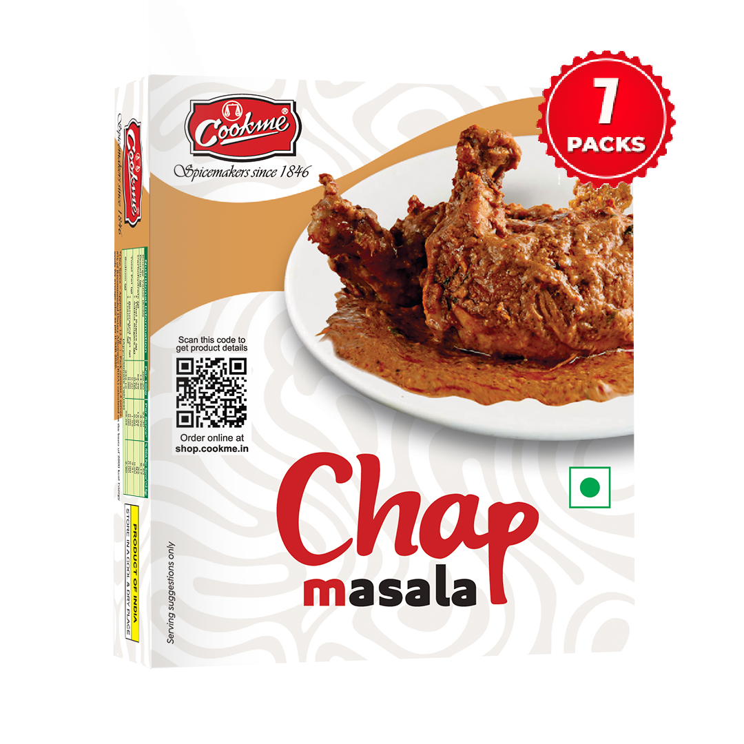 Take a bowl and add 5 tsp (25 g) ‘Cookme Chap Mix’ with half cup water to make a thick paste and keep aside for 5-6 minutes. Make a paste with onion and garlic and keep aside. Marinate the mutton/chicken with onion-garlic paste and the paste made with ‘Cookme Chap Mix’ and keep it aside for 5-6 hours. Heat ghee in a pan, pour the marinated mutton/chicken in it and cook on a low flame. Add salt and sugar to taste and water as per requirement. When it is completely cooked, add rose water and kewra water in it. Serve hot.