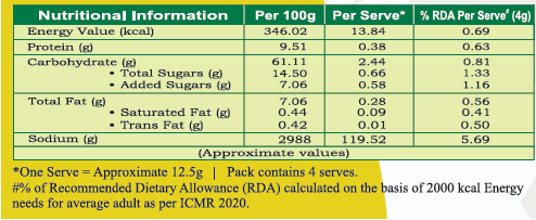 Onion, Sugar , Black Salt, Ginger, Tomato, Red Chilli, Garlic, Black Pepper, Hydrogenated Vegetable Fat, Mango, Cumin, Cardamom (Big), Acidity Regulator (E330), Flavour Enhancer (E621)