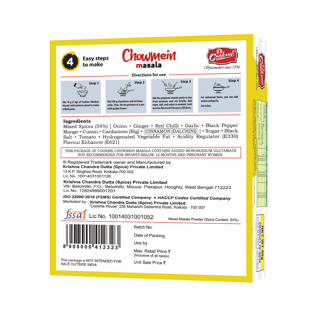 Cookme Chowmein masala is for every Bengali chinese food lovers who can enjoy their home style veg/egg/chicken chowmein recipes in a delightful Indo-Chinese fusion way