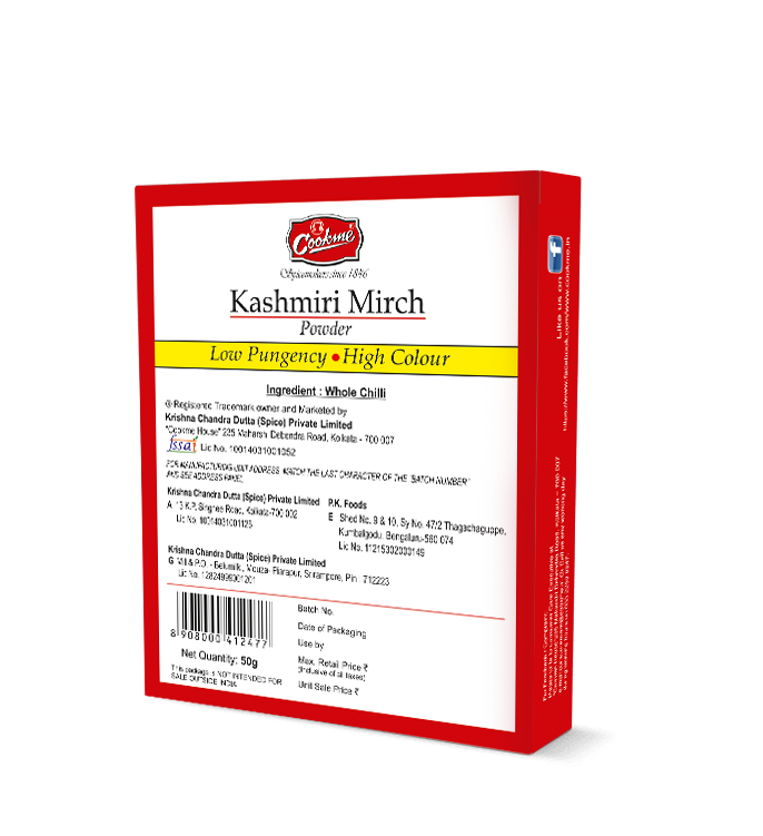 Cookme Kashmiri Mirch Powder renders a natural deep red color, with mild pungency which makes your dish more appealing and palatable.