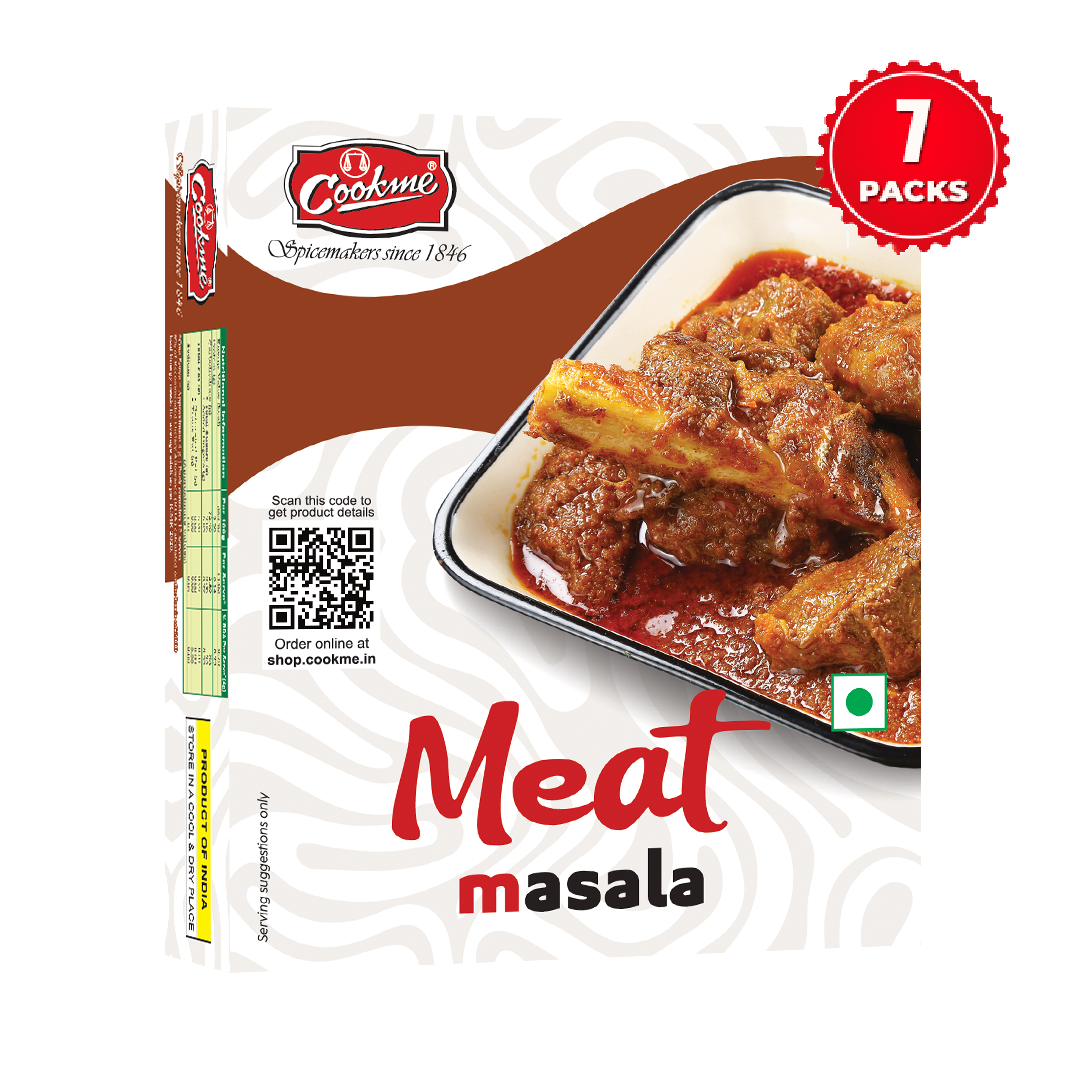 Take a cup of water, mix ‘Cookme Meat Mix’ to make a thick paste and keep aside. Boil the mutton / chicken and keep aside. Fry the sliced onion in a pan till light brown. Add onion paste and ginger-garlic paste with chopped tomatoes and stir well. Now add the paste made with ‘Cookme Meat Mix’ in it and stir continuously till the oil gets separated from the gravy. Now add boiled mutton / chicken in it and stir for a while. Add salt and sugar to taste and water as per requirement. Cook on a low flame. Serve hot.